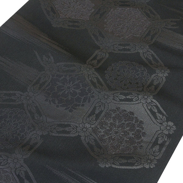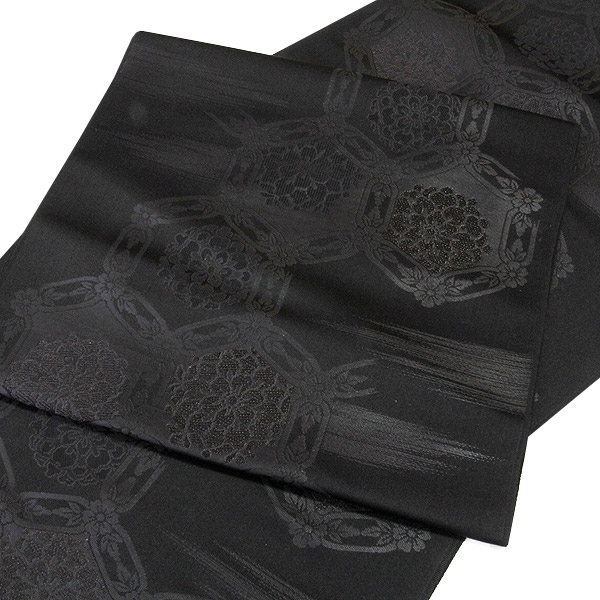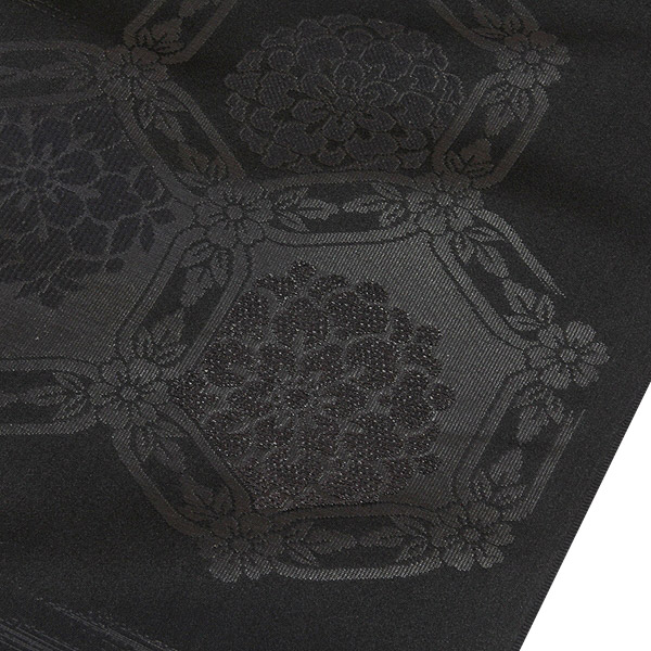 深い黒の地色の「別染 正絹 喪服帯」で、