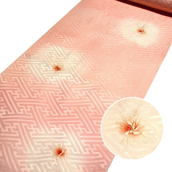 ■長襦袢 正絹 新品 訳あり 反物 絞り入り ぼかし 紗綾形 ピンクベージュ 未仕立て 着物■ [l304]